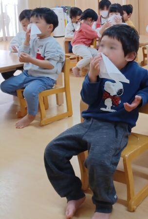 力加減が少し難しいようだったので、お家で鼻水が出ていたら鼻かみを練習していきましょう。