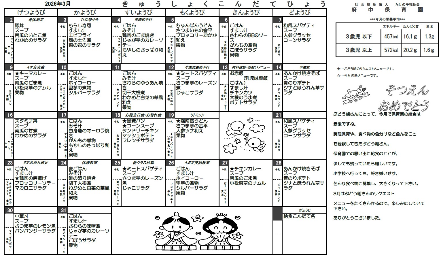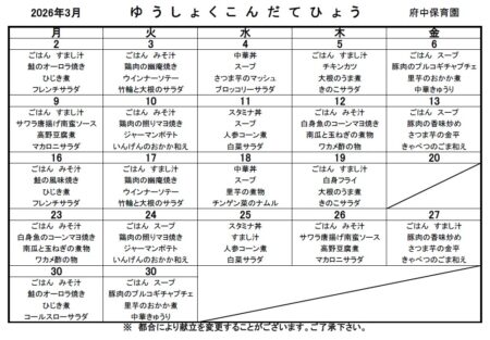 給食メニュー分園 2026年03月