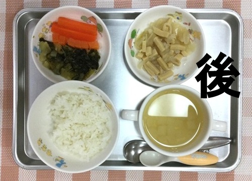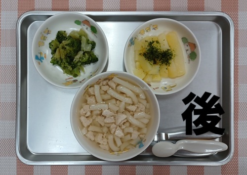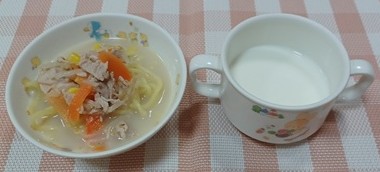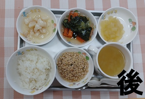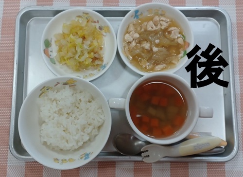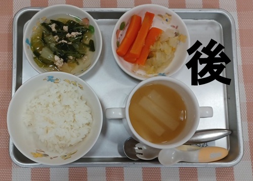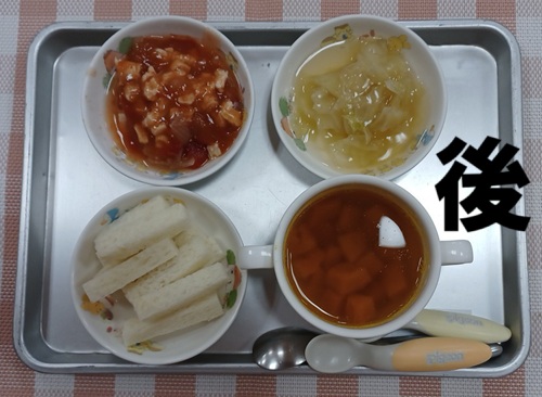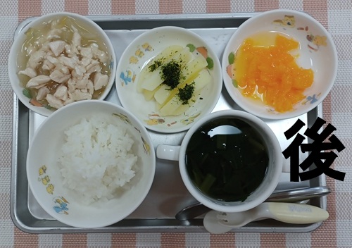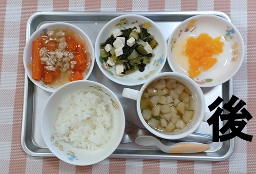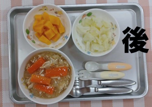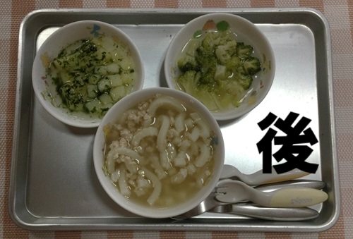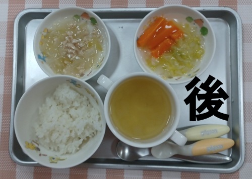 離乳食は写真左上に時期を示しています。(中:中期、後:後期)