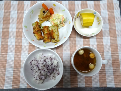献立紹介給食メニュー 2025年10月 園での給食とおやつと離乳食の献立を紹介します。 量は3歳児クラスの給食です。 離乳食は写真左上に時期を示しています。(中:中期、後:後期) 献立表は、ただいま準備中です 月 火 水 木 金 1236789101314準備中15準備中16準備中17準備中20準備中21準備中22準備中23準備中24準備中27準備中28準備中29準備中30準備中31準備中