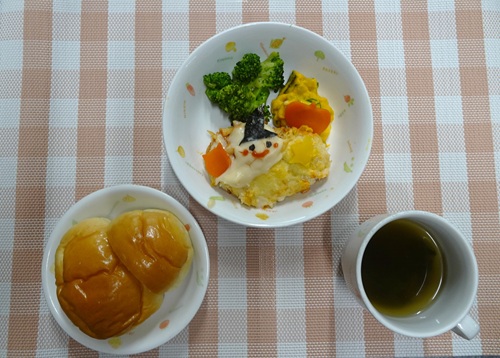 離乳食は写真左上に時期を示しています。(中:中期、後:後期)