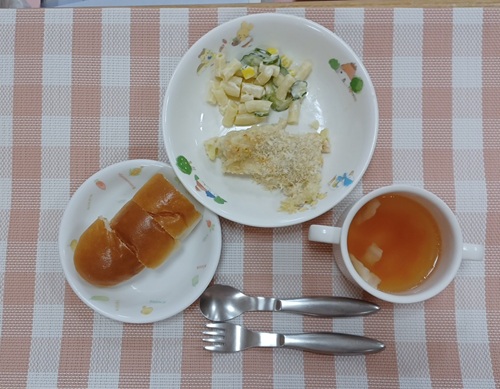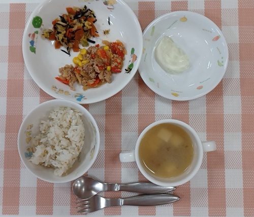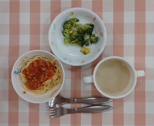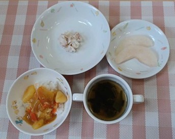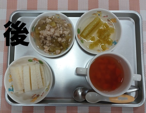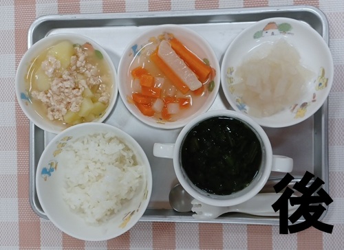 離乳食は写真左上に時期を示しています。(初:初期、中:中期、後:後期)