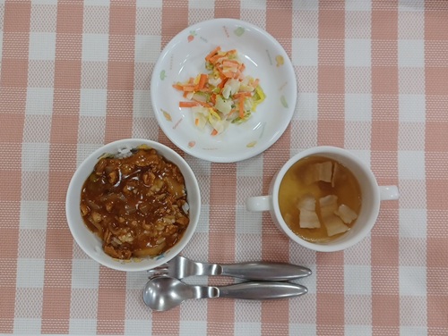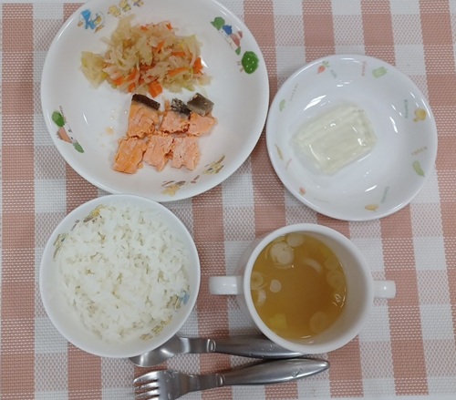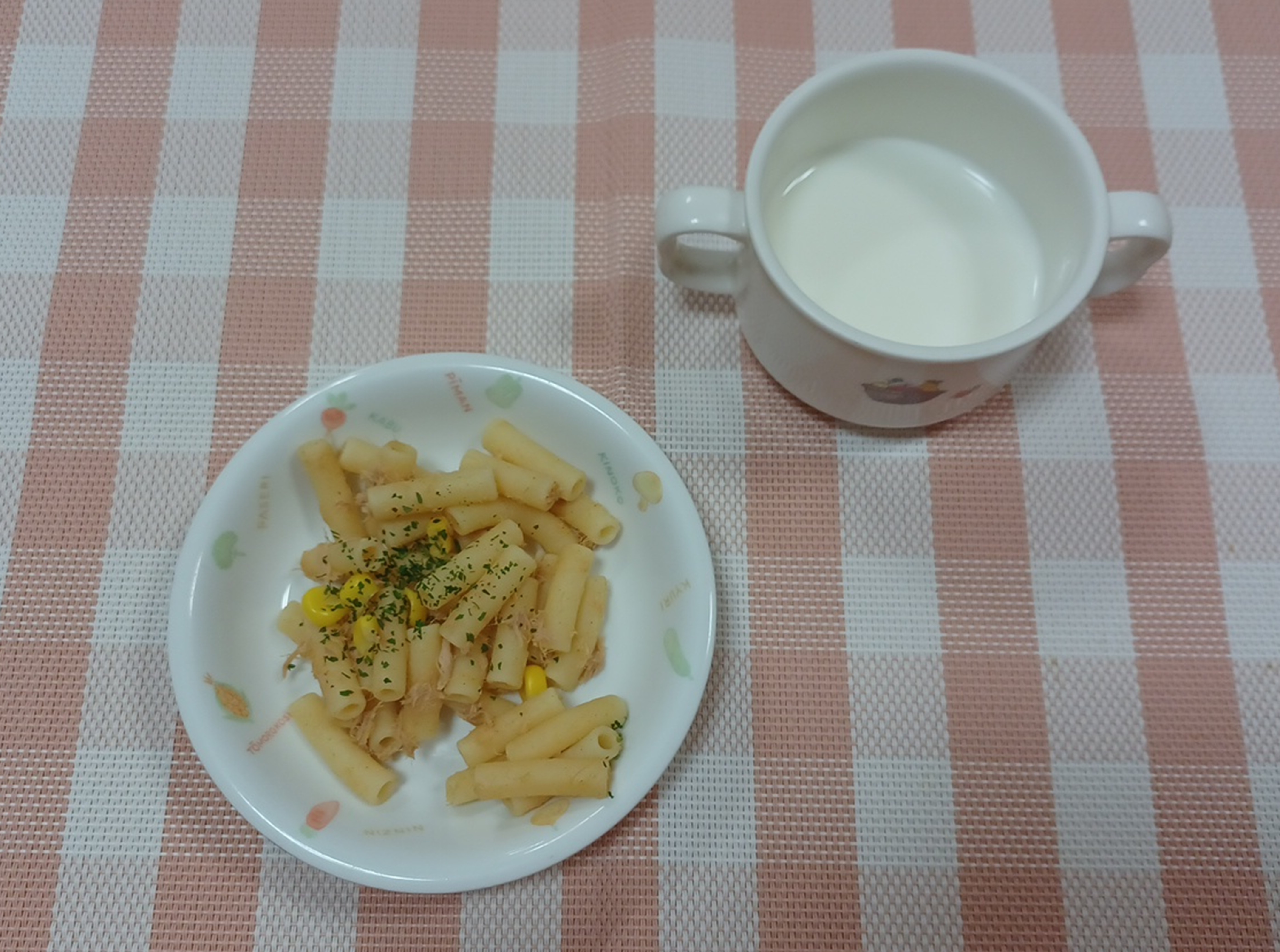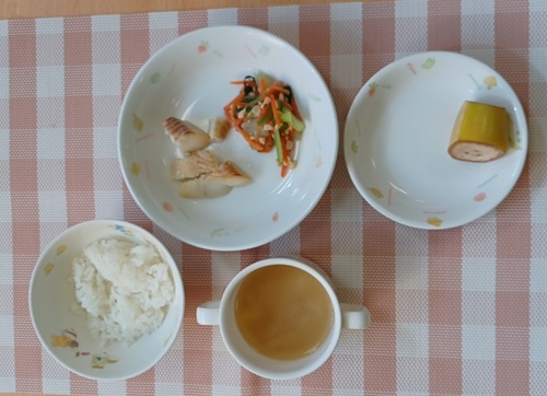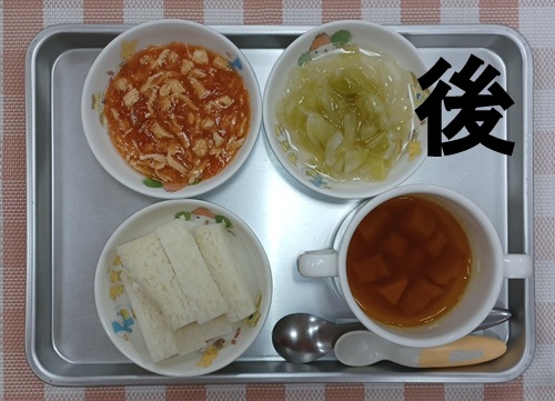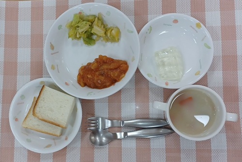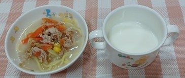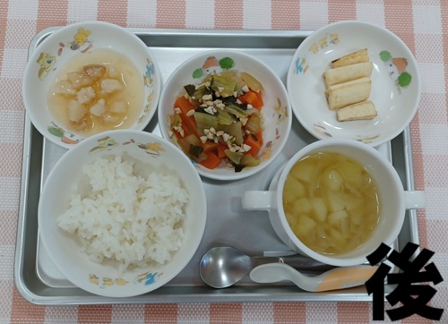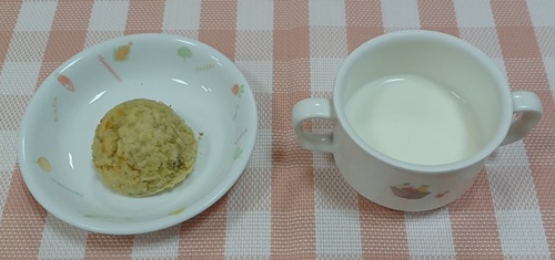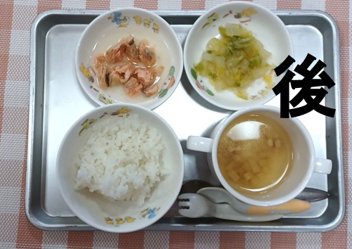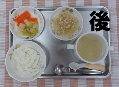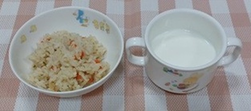 離乳食は写真左上に時期を示しています。(初:初期、中:中期、後:後期)