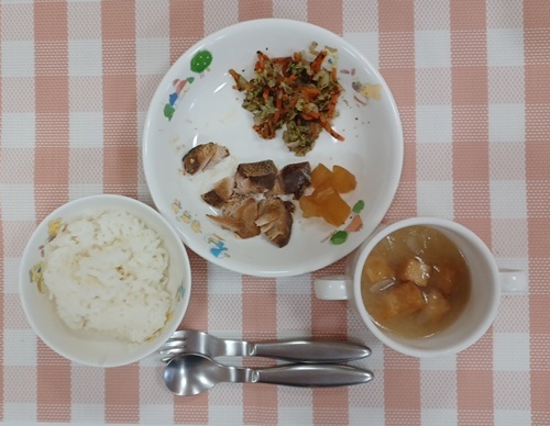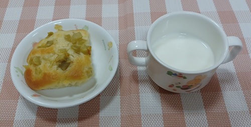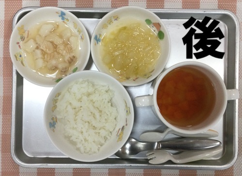 離乳食は写真左上に時期を示しています。(初:初期、中:中期、後:後期)
