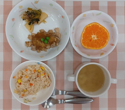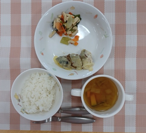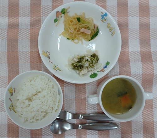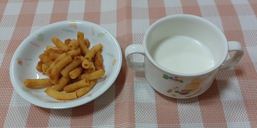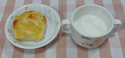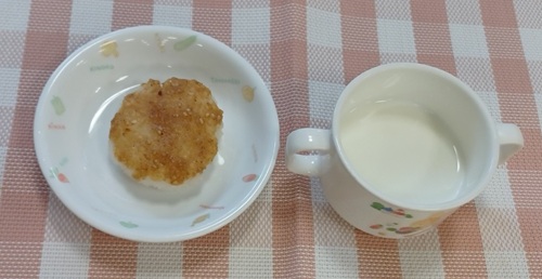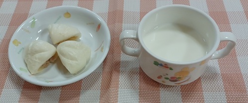 離乳食は写真左上に時期を示しています。(初:初期、中:中期、後:後期)